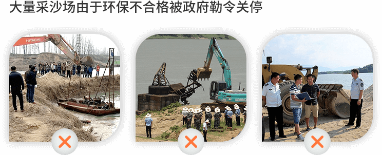 目前國(guó)內(nèi)的機(jī)制砂普及力度并不高,再加上之前環(huán)保不達(dá)標(biāo)被關(guān)停的沙場(chǎng)數(shù)量眾多,所以短時(shí)間內(nèi)合格機(jī)制砂的供應(yīng)依然非常緊張。